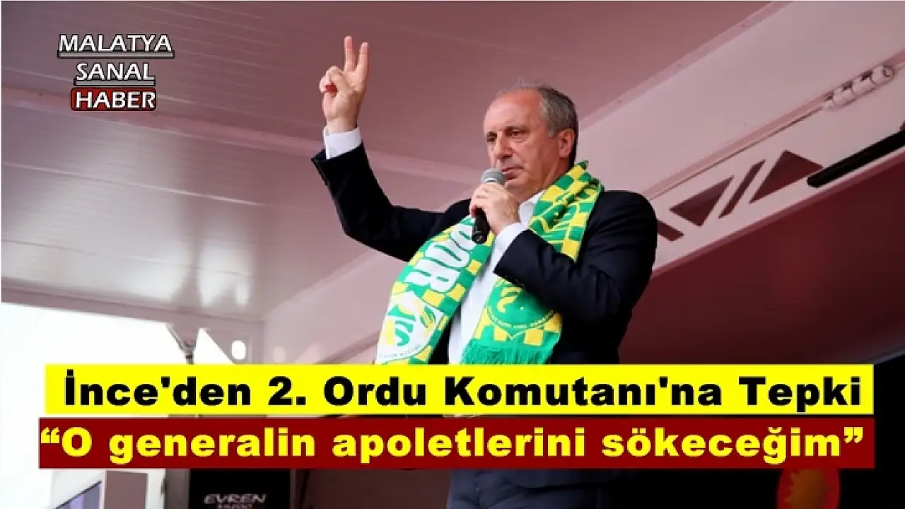 Adıyaman’da 51. mitingine çıkan CHP Cumhurbaşkanı adayı Muharrem İnce, 2. Ordu Komutanı Korgeneral Metin Temel’i eleştirerek, “Hemşehrim Erdoğan, ‘Sen diyor generalin iftara katılmasına niye rahatsız oluyorsun.’ Erdoğan, dürüst ol. İftara katılmasından rahatsız değilim. Sen beni eleştiriyorsun, ordu komutanı da alkışlıyor. Disiplin Kanununun 20. maddesinde derki ‘siyasete karışırsanız ihraç edilirsiniz.’ Ordu komutanın uyarıyorum. Balkanları nasıl kaybettiğimizi bilin. Ordu siyasete girdi Balkanları kaybetti. Sen AK Parti il başkanı değilsin. Beni eleştirirken sen alkışlayamazsın. Cumhurbaşkanı olunca o generalin apoletlerini sökeceğim. Erdoğan, emekli cumhurbaşkanı olacağına göre istiyorsa onun emir eri olabilir. Ordunun üçte biri, FETÖ’nün emrine girmiş, üçte biri bu hale gelmiş. Bu nasıl bir şeydir. Siyasete meraklıysanız üniformanızı çıkartır meydanlara gelirsiniz. O generale sesleniyorum, sen Erdoğan’ın generali değilsin milletin generalisin” dedi.