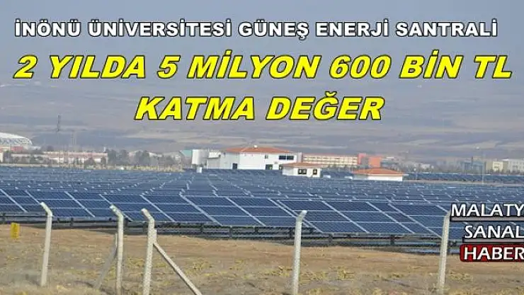 Türkiye'nin en yüksek kapasiteli güneş enerjisi santrali olma özelliğini taşıyan İnönü Üniversitesi Güneş Enerjisi Santralinin 2 yıllık süre içerisinde 5 milyon 600 bin TL katma değerinin olduğu belirtildi.