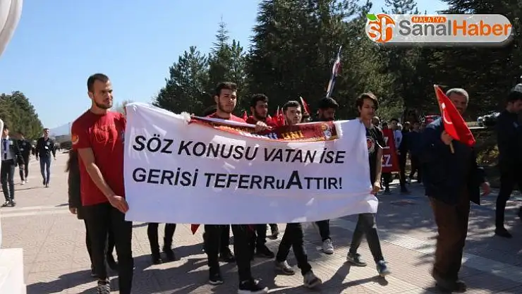 İnönü Üniversitesi öğrenci topluluklarının organizesi ile gerçekleşen yürüyüşe, akademik ve idari personeller de destek verdi. Ellerinde, "Vatan sana canım feda", "Söz konusu vatan ise gerisi teferruattır" gibi pankartlarla ile yürüyen çok sayıda öğrenci Türk Bayraklarıyla birlikte İstiklal Marşı okudu, saygı duruşunda bulundu.