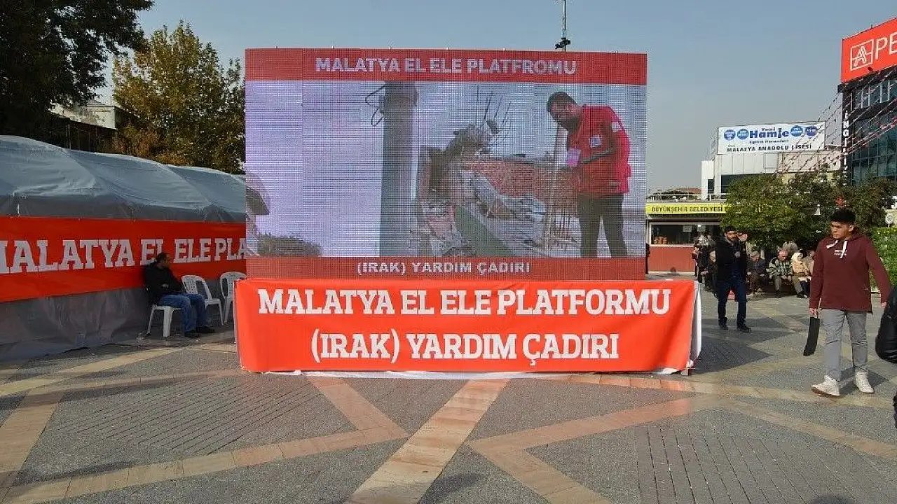 Yeşilyurt Belediye Başkanı Hacı Uğur Polat’ın öncülüğünde kurulan Malatya El Ele Yardım Platformu tarafından Iraklı depremzedelere yardım toplamak amacıyla Soykan Meydanında yardım çadırı kuruldu.