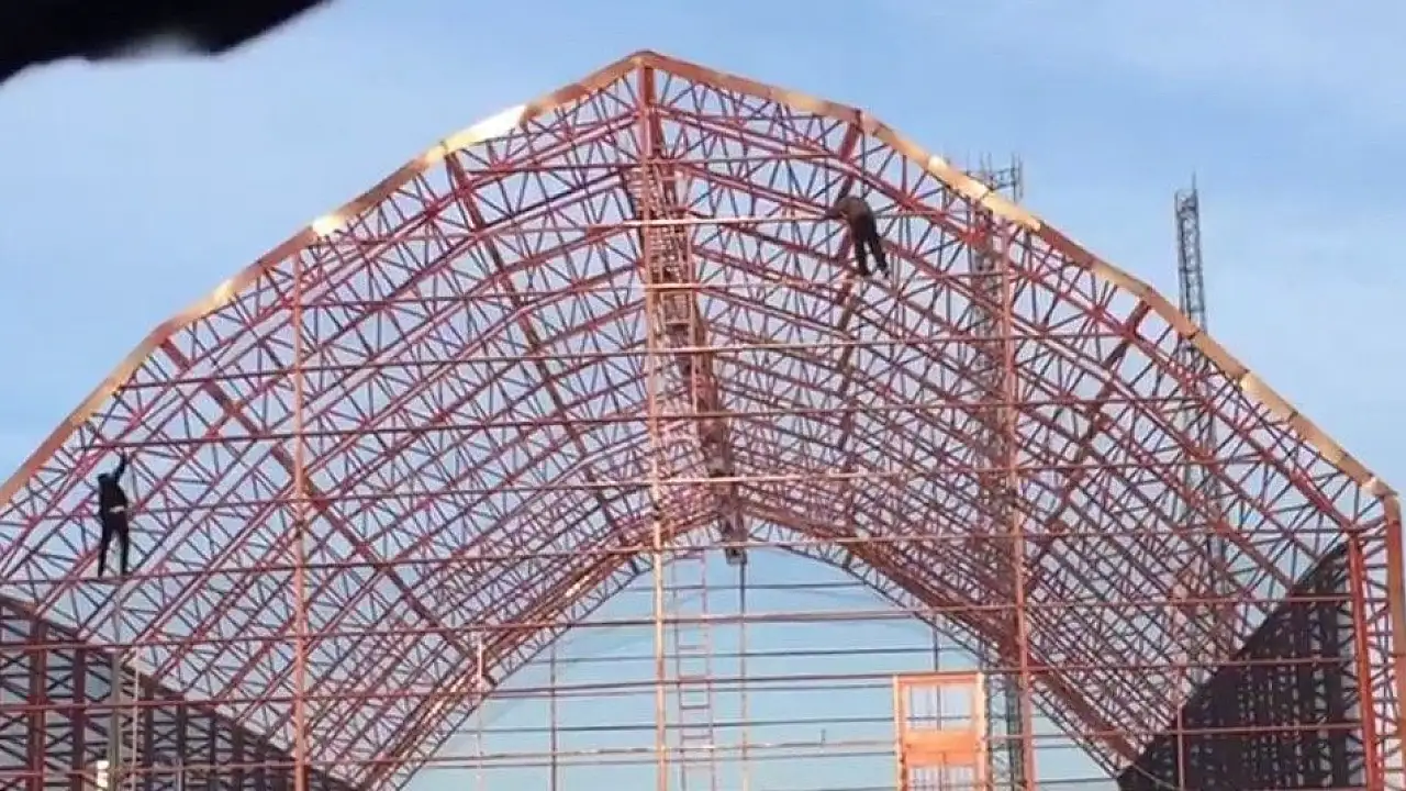 Adıyaman merkez Altınşehir mahallesinde yapılan halı sahanın çelik konstrüksiyon işinde çalışan işçiler yürekleri ağza getirdi. Hiçbir güvenlik önlemi olmadan çalışan işleri gören vatandaşlar cep telefonlarıyla bu anları kaydetti. İşçilerin bu durumuna vatandaşlar tepki gösterdi.