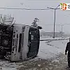 İşçi servisi devrildi: 1 yaralı