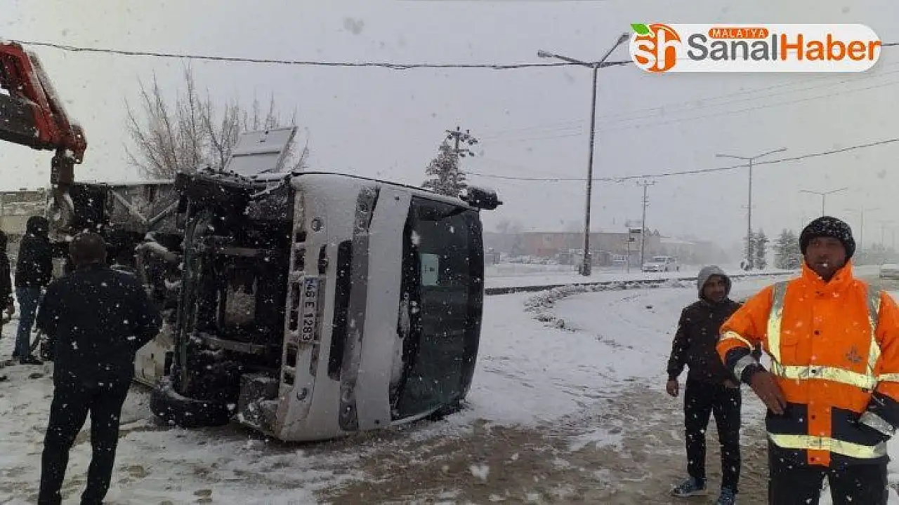 Edinilen bilgiye göre, Adnan Menderes Bulvarı’ndaki kazada Baattin Özdek idaresindeki 46 E 1283 plakalı işçi servisi, yoğun kar yağışı nedeniyle kayganlaşan yolda kontrolden çıktı. Savrulan minibüs, refüjdeki beton elektrik direğine çarptıktan sonra yola devrildi. Kazada, servis minibüsünde bulunan 26 yaşındaki Nurullah Kala yaralandı. Yaralı, ilk müdahalesi 112 Acil Servis ekiplerince olay yerinde yapıldıktan sonra Elbistan Devlet Hastanesi’ne kaldırıldı. Tedavisi burada süren Kala’nın sağlık durumunun iyi olduğu öğrenildi.