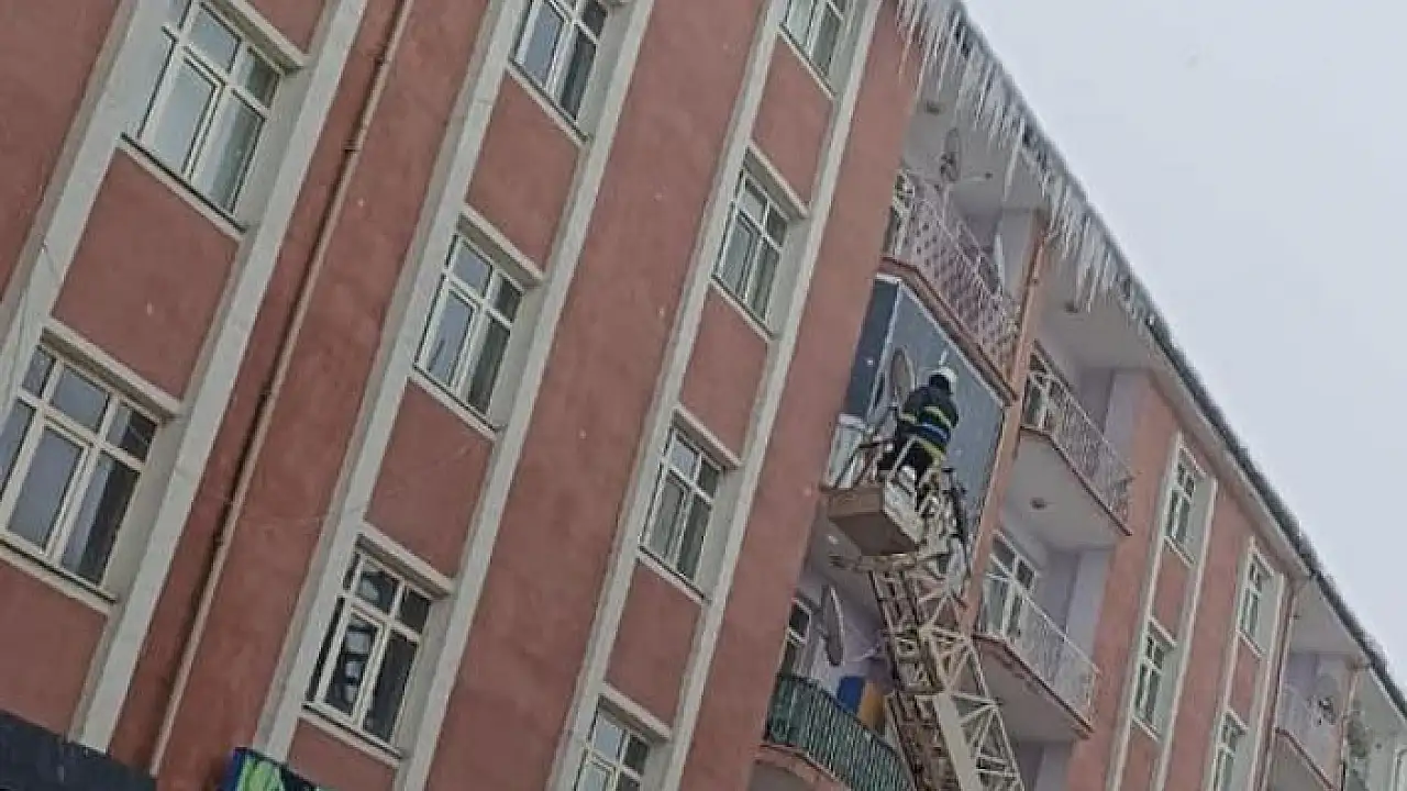 'İtfaiye ekipleri buz sarkıtlarını temizledi'