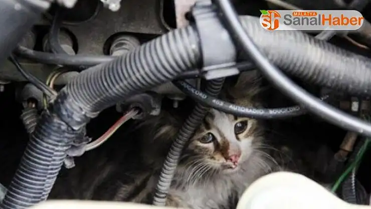 Adıyaman’ın Kahta ilçesinde otomobilin motor kısmına sıkışan yavru kedi itfaiye ekiplerince kurtarıldı.