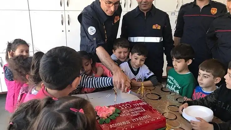 Adıyaman Belediyesi İtfaiye Müdürlüğü personeli, ziyaretlerine gelen Cumhuriyet Anaokulu öğrencilerine pasta ikram etti.