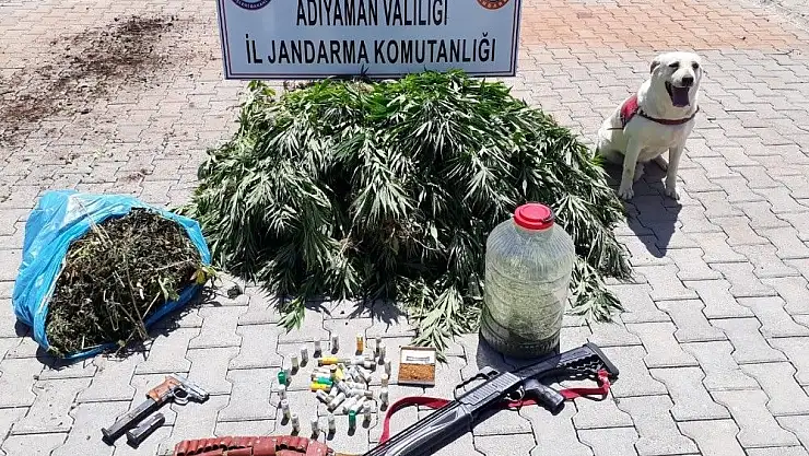 Adıyaman İl Jandarma komutanlığı ekipleri yaptıkları operasyonda 3 bin 750 kök kenevir bitkisi, 16 kilo esrar ve silah ele geçirdi.
