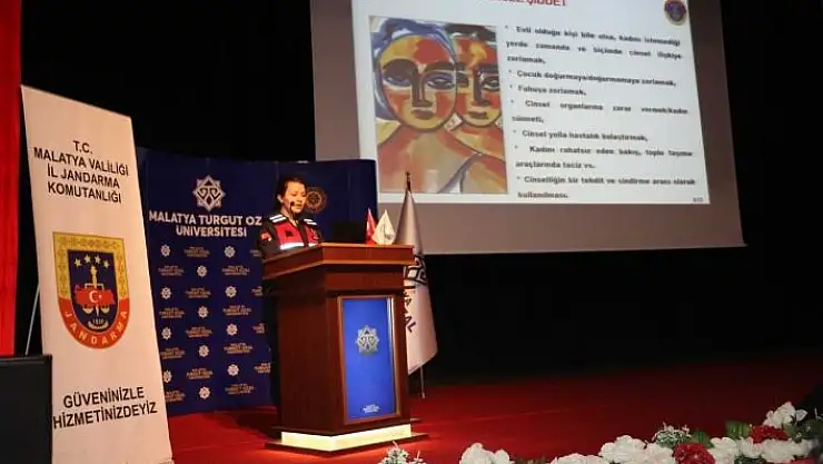 Malatya İl Jandarma Komutanlığı ekiplerince, Malatya Turgut Özal Üniversitesi(MTÜ)öğrenci ve öğretim görevlilerine yönelik çeşitli konularda bilgilendirme faaliyetleri düzenlendi. Aile İçi Şiddetle Mücadele Kısım Amirliğince "6284 Sayılı Ailenin Korunması ve Kadına Karşı Şiddetin Önlenmesine Dair Kanun, KADES Uygulaması, En İyi Narkotik Polisi Anne, Madde Bağımlılığı ile Mücadele, Siber Zorbalık, Siber Farkındalık, Güvenli İnternet Kullanımı, Sosyal Medya Kullanımında Dikkat Edilecek Hususlar ve Dijital Bağımlılık konularında" bilgilendirmelerde bulundu.