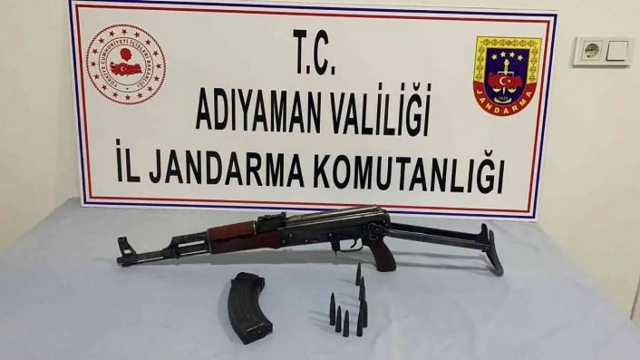 Adıyaman İl Jandarma Komutanlığı ekipleri bir şahsın elinde bulunan çuvalda 1 adet kaleşnikof tüfek ve 10 adet fişek ele geçirdi.