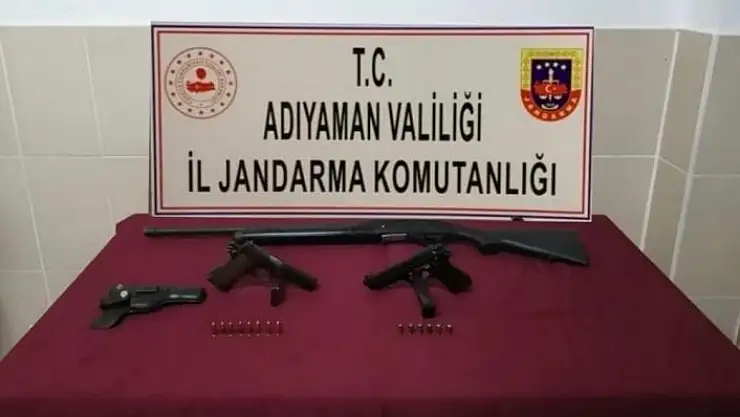 Adıyaman´da jandarma ekipleri tarafından durdurulan bir araçta 2 adet tabanca, 1 adet av tüfeği ele geçirildi.