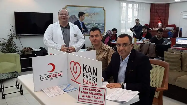 Kahta ilçe Jandarma Komutanlığında görevli personel Kahta Kaymakamı Ahmet Gazi Kaya ve diğer kurum amirlerinin katılımıyla kan bağışında bulundu.