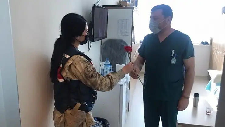 'Jandarmadan sağlıkçılara çiçekli kutlama'