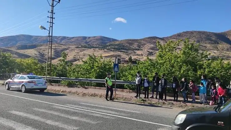 Malatya İl Jandarma Komutanlığına bağlı Battalgazi İlçe Jandarma Komutanlığı Trafik Timleri Malatya Pütürge İl yolu Yaygın Mahallesinde ilkokul öğrencilerine yaya önceliği, trafik işaretleri ve temel trafik kuralları konularında eğitim verdi.