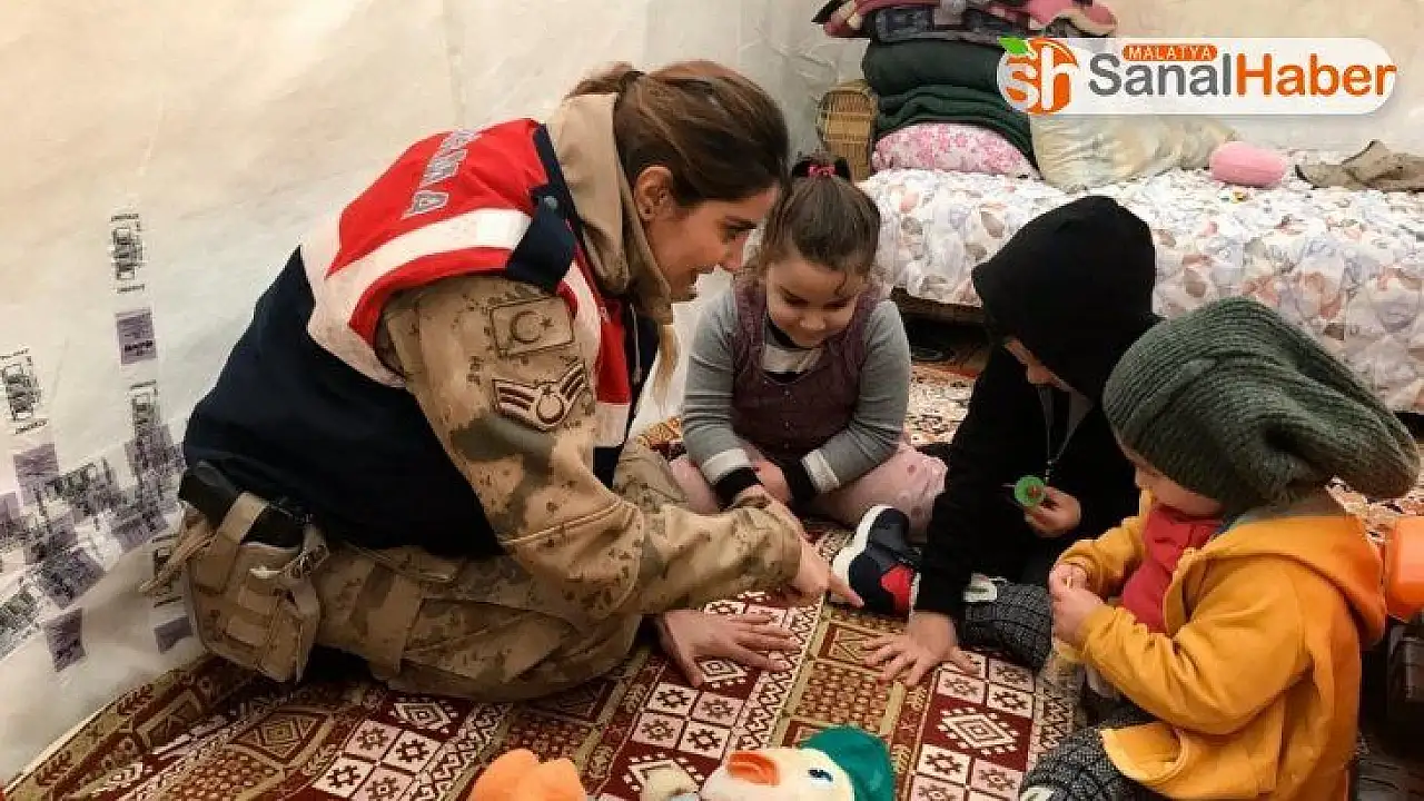 Jandarmanın kadın personelleri, depremzede çocukları yalnız bırakmıyor