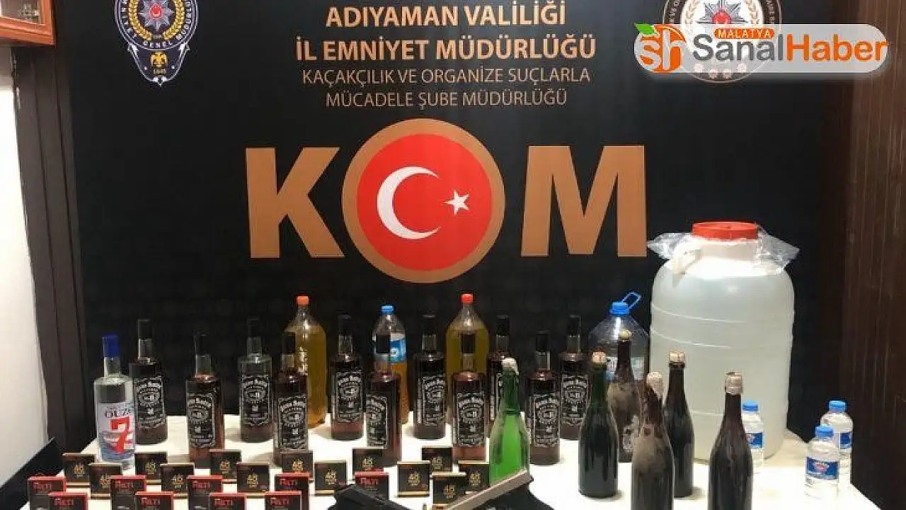 Edinilen bilgilere göre, Adıyaman il Emniyet Müdürlüğü Kaçakçılık ve Organize Suçlar Şube Müdürlüğü, Besni ilçe Emniyet Müdürlüğü ve Gölbaşı ilçe Emniyet Müdürlüğü ekiplerince Besni ilçesinde bulunan bir adrese kaçak içki operasyonu düzenlendi. Yapılan operasyonda 59 şişe kaçak viski, 65 litre alkol, 6 şişe 50 yıllık yıllanmış kaçak şarap, 1 adet kurusıkı tabanca, 1 adet ruhsatsız tabanca ve 22 adet cinsel güç artırıcı haplar ele geçirildi. Operasyonda ele geçirilen malzemelere el konulurken olayla alakalı M.Y., Y.S.ve B.S., isimli 3 kişi yakalandı. Şahıslar, sorgulanmak üzere polis merkezine götürüldü.