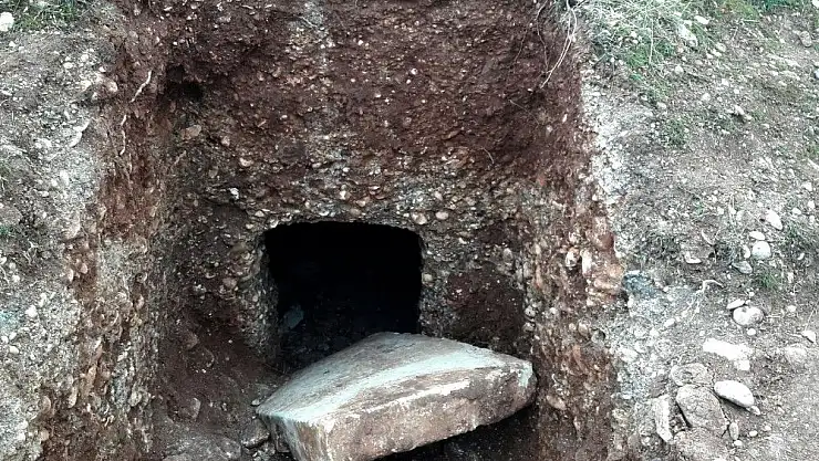 Jandarma ekipleri kaçak kazı yapan kişilerin yakalanması için çalışma başlatırken, Müze Müdürlüğü yetkililerine haber verildi. Müze Müdürlüğü yetkilileri kazı yapılan yerde yaptıkları çalışmada, oda mezarın Roma Dönemine ait olduğunu fakat diğer mezarlardan farklı olarak bu mezarın iri taş ve kumdan yapıldığını, mezarın kapı taşının olduğunu tespit etti.