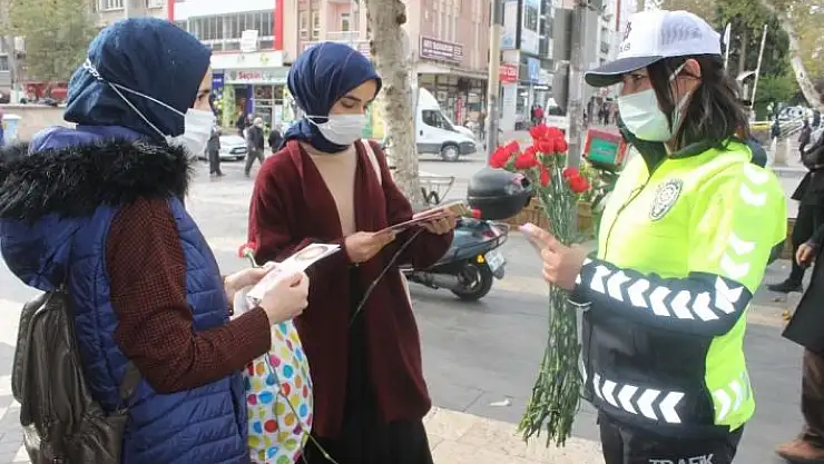 Adıyaman´da, 25 Kasım Kadına Yönelik Şiddetle Mücadele Uluslararası Dayanışma Günü dolayısıyla kent merkezinde kadınlara karanfiller dağıtıldı.