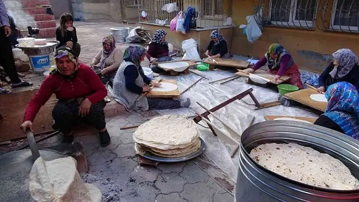 Kahramanmaraş´ta kadınlar, kış mevsiminde tüketmek için yardımlaşma usulü geleneksel yöntemlerle kışlık ekmek hazırlıyor.