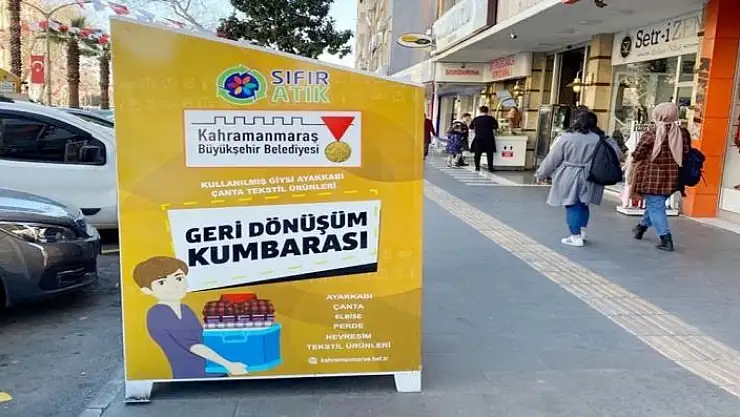 Kahramanmaraş Büyükşehir Belediyesi Sıfır Atık Projesi kapsamında şehir genelinde konumlandırdığı kumbaralar ile geri dönüşüme destek olacak. Büyükşehir Belediyesi tarafından kıyafetler başta olmak üzere çanta, ayakkabı, nevresim ve perde gibi tekstil ürünlerinin de toplanacağı geri dönüşüm kumbarasından şu ana kadar 56 adet yerleştirildi. Geri dönüşüm kumbaralarının sayısı 300´ü bulacak. Projeyle, tekstil ürünlerinin üretimi sebebiyle oluşan karbon ayak izinin önlenmesi ve ekosistemin korunması hedefleniyor.