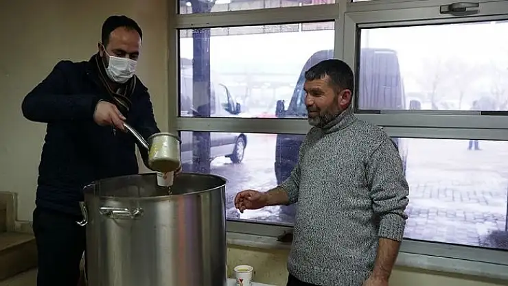 Kahramanmaraş´ta kar yağışıyla birlikte sıcaklıkların düştüğü bugünlerde vatandaşlara çorba ikram ediliyor.