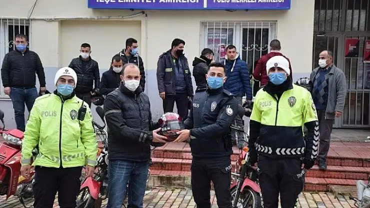 Kahramanmaraş´ta `Bir Kask Bir Hayat´ projesi kapsamında motosiklet sürücülerine kask hediye edildi.