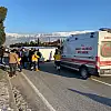 Kazada işçileri taşıyan minibüs yan yatarken 14 işçiden 4´ü yaralandı.