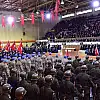 Kahramanmaraş’ta Cumhuriyet Bayramı, havanın yağışlı olması nedeniyle spor salonunda düzenlenen etkinlikle kutlandı.