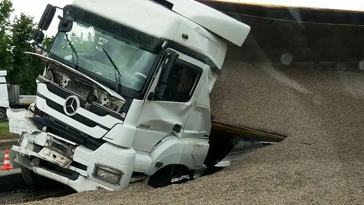 Kazada tır sürücüsü yaralanırken, hafriyat yola saçıldı. Kaza nedeniyle trafiğe kapanan yol yapılan temizlik çalışmalarının ardından tekrar trafiğe açıldı.