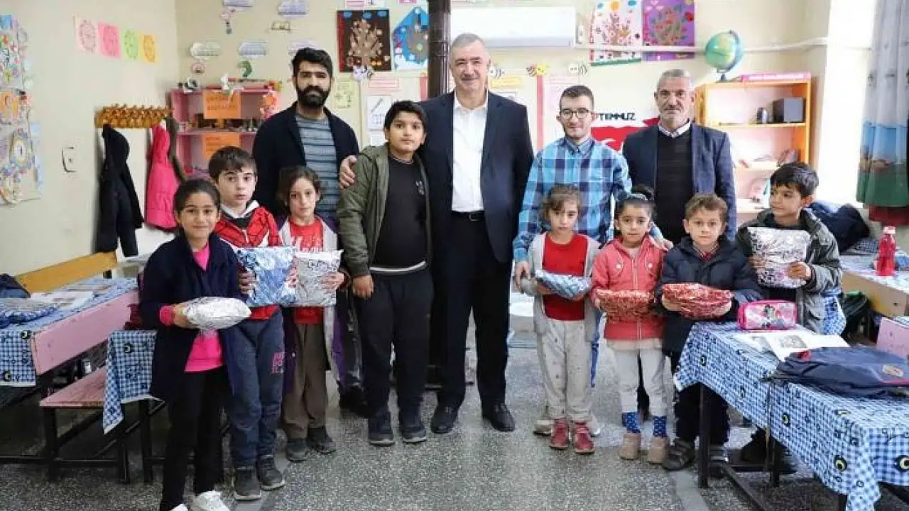 Adıyaman´ın Kahta ilçe Belediyesi Engelleri Aşalım Hayatı Paylaşalım projesi çerçevesinde ilçe bağlı köy okullarına giyim ve kırtasiye