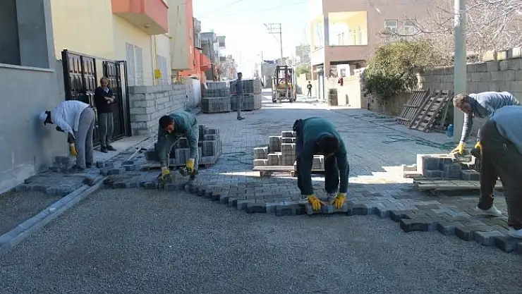 Adıyaman´ın Kahta ilçe Belediyesi´nin, ilçe genelinde aşamalı olarak yürüttüğü kilitli parke taşı döşeme çalışmaları devam ediyor.