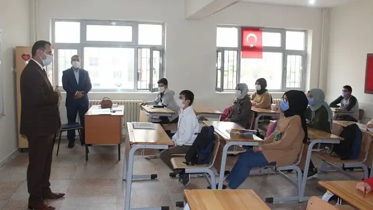 Öğrenciler, yüz yüze eğitime geçiş planlamasının üçüncü aşamasıyla arkadaşlarına kavuşmanın mutluluğunu yaşadı. Okullarda, öğrencilerin sosyal mesafe kurallarına uyması, maske takması ve dezenfektan noktalarını kullanmaları gözlerden kaçmadı. Öğrencilerin yüz yüze eğitime başlamasının heyecanına ortak olan İlçe Milli Eğitim Müdürü İbrahim Halil Tunçmen ve İlçe Milli Eğitim Şube Müdürü Mehmet Bayram, ilçe merkezindeki okulları ziyaret ederek öğrencilerle sohbet etti. Öğrenciler için okullarda pandemiyle mücadele kapsamında gerekli tedbirlerin alındığını kaydeden İlçe Milli Eğitim Müdürü İbrahim Halil Tunçmen, "2020-2021 eğitim öğretim döneminin ilk aşamasında okul öncesi ve 1. sınıflar, ikinci aşamasında ise 2, 3, 4, 8. ve 12. sınıflarda yüz yüze eğitim başlamıştı. 5. ve 9. sınıflarımız da bugünden itibaren yüz yüze eğitim planlamasına dahil oldu. Okullarımızda 5. ve 9. sınıf öğrencilerimizin heyecanına ortak olmak istedik" şeklinde konuştu. Öğrencilerin okul yönetimince belirlenen dersleri yüz yüze eğitim yoluyla, bunların dışında kalan derslerin ise uzaktan eğitim yoluyla tamamlayacağını belirten Müdür Tunçmen, "Yüz yüze eğitim için çocuğunu okula göndermek istemeyen velilerimiz göndermek istediğine dair belgelerini okul müdürlerine teslim etmeleri gerekiyor. Velisi tarafından okula gönderilmek istenmeyen öğrencilerimiz devamsız sayılmayacak. Ama bu öğrencilerin tüm derslerine uzaktan eğitim yoluyla devam etmeleri gerekiyor. 6, 7, 10 ve 11. sınıf öğrencilerimiz uzaktan eğitimlerine devam etmektedir" diye konuştu.