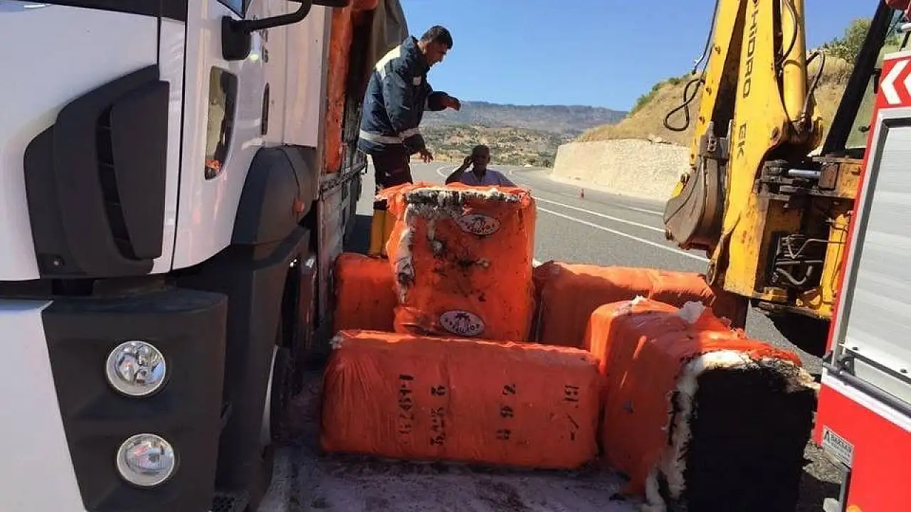 'Kamyon üzerindeki pamuk balyaları yandı'