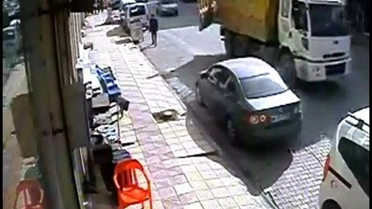 Kazım turan, “Vatandaşların arabamın etrafında toplandığını görünce aracımın yanına gittim ve korkunç manzarayla karşılaştım. Olayın tam olarak boyutunu anlamadım. Hatta kardeşim kamyonun peşinden koşarak 150-200 metre ileride durdurdu. Kamyon şoförü geldi ve tutanak tuttuk. Daha sonra iş yerimin güvenlik kamerasına bakınca daha vahim bir durumla karşılaştık. Oradan geçen bir vatandaşın saniye farkla ölümden döndüğünü gördük. Eğer o kapak o vatandaşa değseydi öldürürdü. Bu tür olayların olmaması için devletin gerekli önlemleri alması lazım. Bu hafriyat kamyonları her zaman tehlike saçıyor. Güvenlik kamerasına dikkatli bakarsanız kepçe tam sığmadığı için kapak yan tarafta ve bir genç kapağı tutarak gidiyor. Açılan kapak benim arabama değdi. İnsanlara da değebilirdi. İnşallah bundan sonra böyle bir şey olmaz. Hepimize geçmiş olsun diyorum. Arabamdaki hasar maliyettir, yerine gelir ama insan hayatı yerine gelmez" dedi.