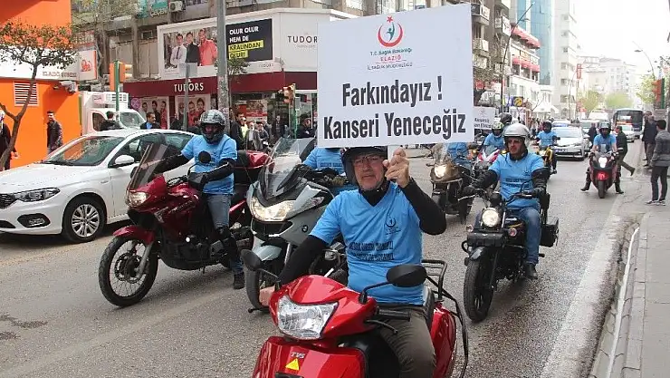 Elazığ’da kansere dikkat çekmek için motosikletlilerin de destek verdiği yürüyüş yapıldı.