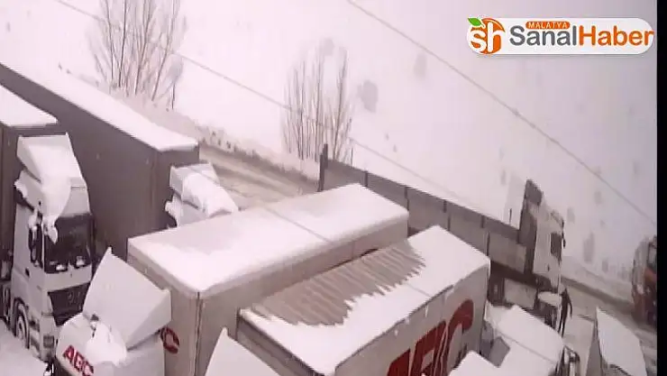 Sivas’ta bir sürücü kar küreme aracını seyredenken neredeyse yoldan geçmekte olan tırın altında kalıyordu, bu anlar güvenlik kamerasına yansıdı.