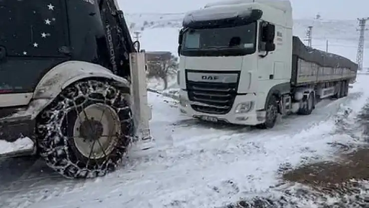 'Kar yağışından dolayı yolda kalan tır ekipler tarafından kurtarıldı'