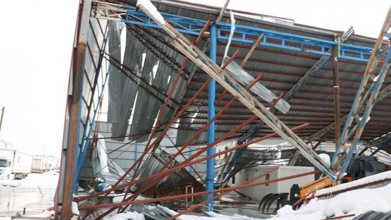 Kahramanmaraş´ta inşaat aşamasında olan geri dönüşüm fabrikasının çatısı yağan kara dayanamayarak çöktü.