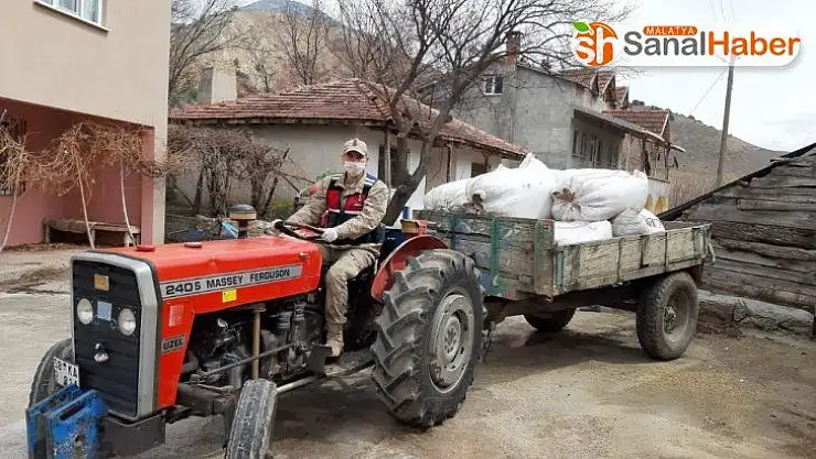 Korona virüsü tedbirleri kapsamında karantina altına alınan köyde samanı biten köylüye samanını Jandarma ekipleri götürdü.