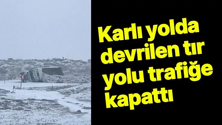 Malatya-Sivas karayolunda kar nedeniyle kayganlaşan yolda devrilen tır yolu trafiğe kapatırken, kazada yaralanan olmadı.