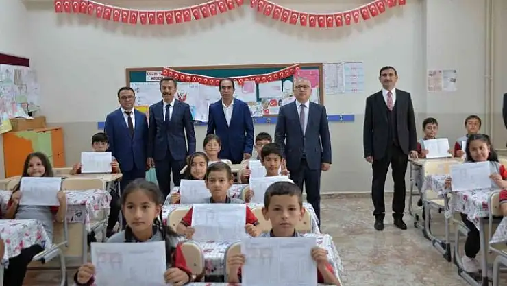 Karne dağıtım programına katılan İl Milli Eğitim Müdürü Ergüven Aslan´da 3 sınıf öğrencilerine karne verdi. Velilerle ve öğrencilerle sohbet eden Aslan, çocukların ve velilerin karne heyecanına ortak oldu.