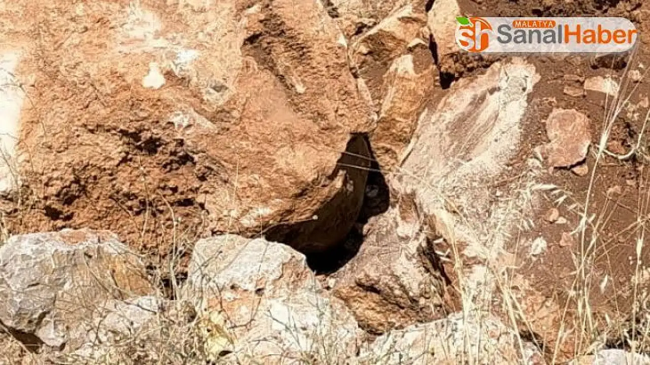 Adıyaman’ın Gölbaşı ilçesinde doğal gaz boru hattı üzerindeki kayanın içinde bulunan fünye korkuya neden oldu.