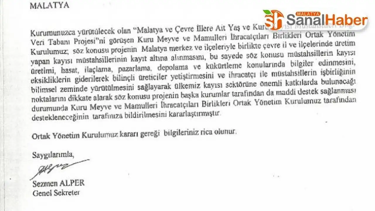 Kayısı Araştırma ve Proje Geliştirme Derneği tarafından yapılan 14 maddelik öneride, “ Bu veriler toplanıldığında 350 milyon Dolarlık bir piyasada yüzde 10 iyileştirmenin bile 35 milyon dolarlık bir etkisi olacaktır. Bu her geçen yıl daha da büyüyecektir. Şu anda el yordamıyla yapılan bütün işlemler elektronik ortamda yürütülecek ve bu veriler, aynı zamanda, Kuru Kayısı Borsasının temellerini oluşturacaktır. Malatya’daki müstahsillerin, Güven duyacağı ve teknolojiye uyum sağlamış alıcılara ihtiyacı vardır. Müstahsillerin bahçelerinin mevkileri uzaklık olarak bilindiğinden yaş kayısı sezonunda en ekonomik bahçe sahibiyle en kısa süre içerisinde irtibat kurulabilecektir. Bu projenin hayata geçmesi halinde, Bahçelerin mevkileri ve meyvelerin olgunlaşma tarihleri tarafımızdan bilindiği için sezon boyunca nerede, ne zaman, ne kadar kayısı var, en iyi tarafımızdan bilinecektir. Müstahsillerle iyi ilişkiler geliştirilerek satışta ilk bize başvurmaları sağlanacaktır. Ve bu sayede Dünya satış Borsası kurulacaktır.