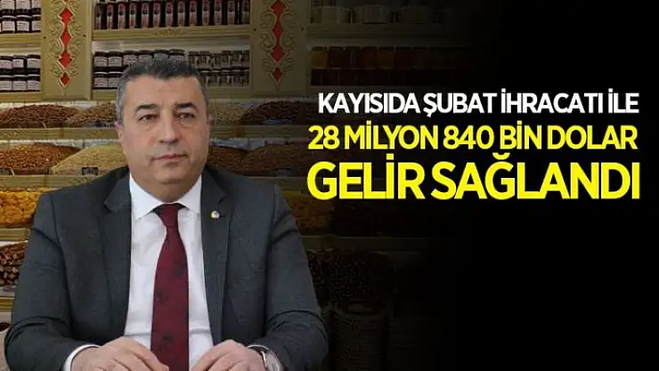 Malatya Ticaret Borsası Başkanı Ramazan Özcan, kayısı sezonunun başladığı geçtiğimiz Ağustos ayından bugüne kadar 7 aylık süreçte 57 bin 528 ton kuru kayısı ihracatı karşılığında 251 milyon 460 bin dolar gelir sağlandığını belirtti. Geride kalan Şubat ayı ihracatına yönelikte açıklamalarda bulunan Özcan, "Şubat´ta 5 bin 797 ton kuru kayısı ihracatı gerçekleştirdik. Bunun karşılığında da ülkemize ve Malatya´mıza 28 milyon 840 bin dolar da gelir getirmiş olmaktayız." dedi.