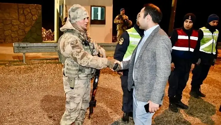 Görev başında olan jandarma, emniyet, itfaiye ve sağlık çalışanlarını tek tek ziyaret eden Kaymakam Çağlar Partal, çalışmalar hakkında bilgiler aldı. Kaymakam Partal daha sonra yol kontrolü yapan jandarma personellerini ziyaret etti. Kaymakam Partal, burada, ise durdurulan araç sürücülerinin yeni yıllarını kutladı.