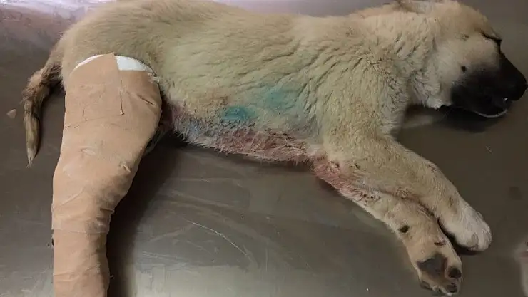 Adıyaman’ın Besni İlçesine bağlı Şambayat Beldesinde bir aracın çarpması sonucu ağır yaralanan yavru köpek, tedavi edildi