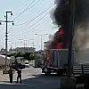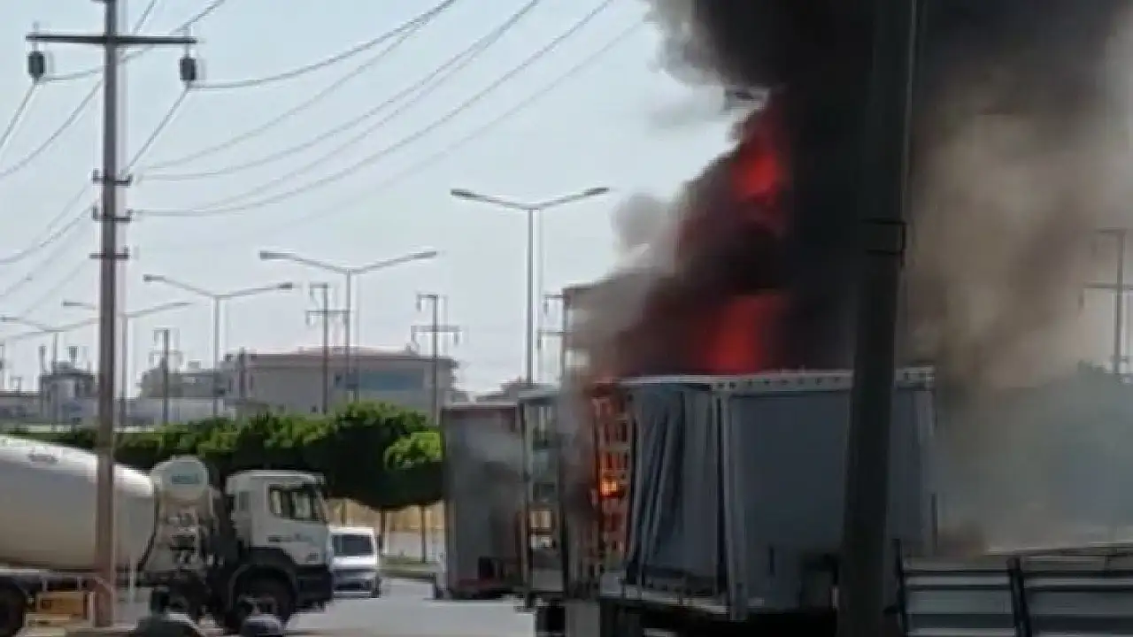 Adıyaman´da, tekstil firmalarına kimyasal madde taşıyan tır, cayır cayır yandı. Yangın itfaiye ekiplerince güçlükle kontrol altına alındı.