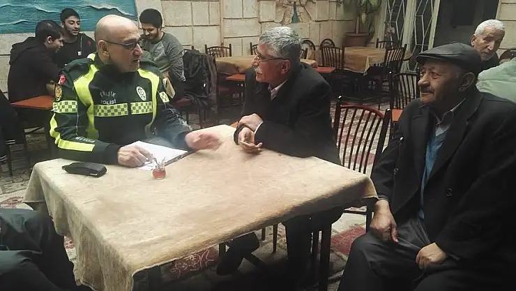 Adıyaman’da umuma açık kafe, çay ocakları ve kıraathanelerde vatandaşlara yönelik trafik eğitimi verildi.