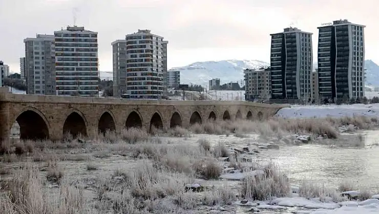 Sivas´ta soğuk havanın etkisiyle oluşan kırağı, tarihi Eğriköprü ve çevresinde kartpostallık görüntüler oluşturdu.