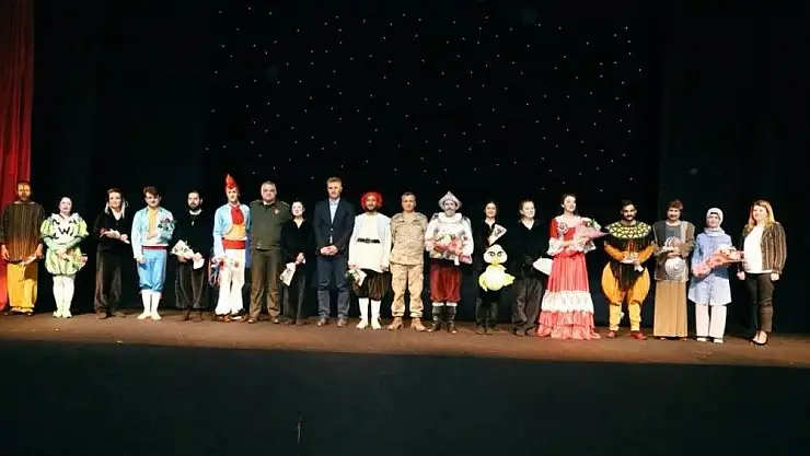 Tiyatro oyununun sonunda sahneye çıkarak oyunculara çiçek takdim eden Belediye Başkanı Hüsrev Kutlu’nun eşi Fulya Kutlu, kırsaldan gelen miniklere de satranç takımı hediye etti.