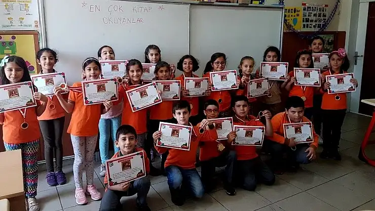Kitap okuma alışkanlığının kazandırılması ve öğrencilerin kitaba daha fazla önem vermesi amacıyla eğitim öğretim sezonu itibariyle başlatılan kitap okuma etkinliğinde sona gelindi. Sınıf içerisinde en fazla kitap okuyan 19 öğrenciye ‘kitap kurdu’ belgeleri ile madalyaları verildi.
